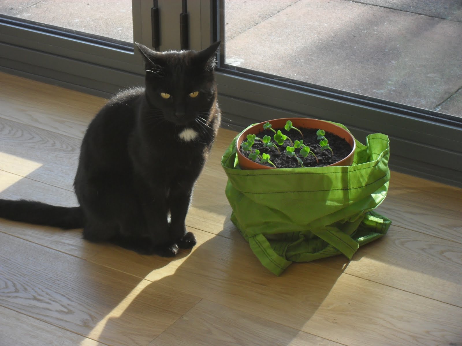 All fine until an enthusiastic cat stuck a large paw onto the largest seedling and bent it flat. I carefully tried to stand it up but it didn't want to...